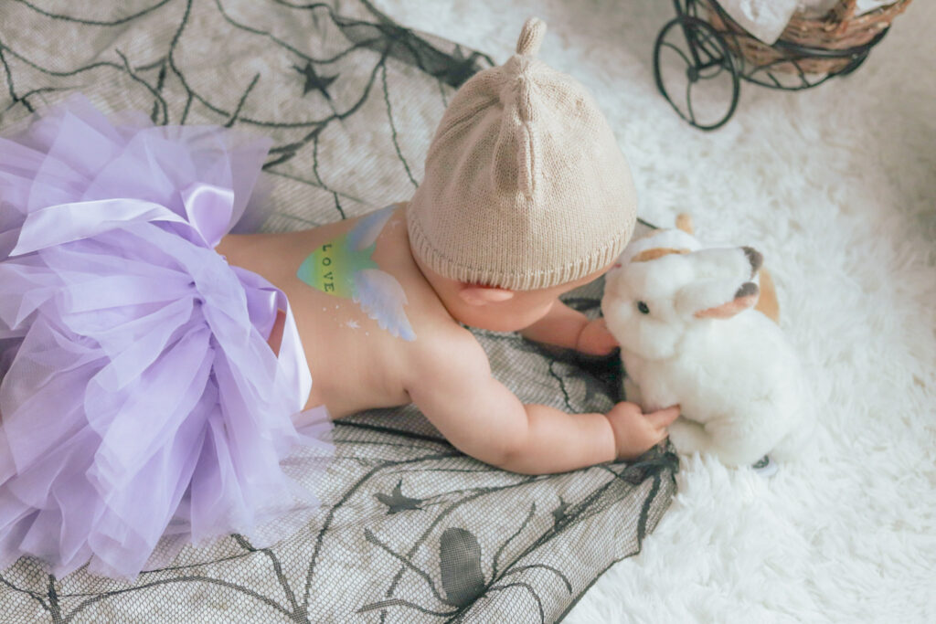 子どもの背中に可愛く天使の羽根を描く、